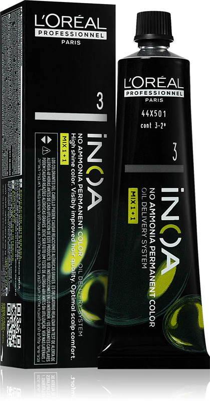 Η ΙΝΟΑ, η επαγγελματική βαφή χωρίς αμμωνία, είναι άοσμη και προσφέρει ιδανική άνεση για την επιδερμίδα του κεφαλιού. Προσφέρει κάλυψη λευκών έως 100% και ρεφλέ με μεγάλη διάρκεια: 6 εβδομάδες έντονης θρέψης και περιποίησης των μαλλιών. Τα μαλλιά είναι πιο απαλά και λαμπερά από ότι ήταν πριν από τη βαφή. Μετά από κάθε βαφή, η κατάσταση των μαλλιών είναι εμφανώς βελτιωμένη. Απεριόριστη δύναμη χρώματος και μοναδική λάμψη στα μαλλιά.